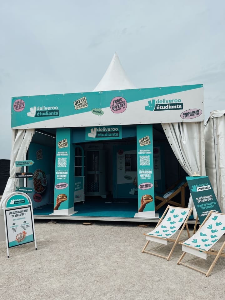 - Le Roadshow Deliveroo Étudiants : un format modulable (small, medium, large) avec bar à gaufres, transat XXL, animation fun et bar à cadeaux sur plus de 60 campus et évènements étudiants
